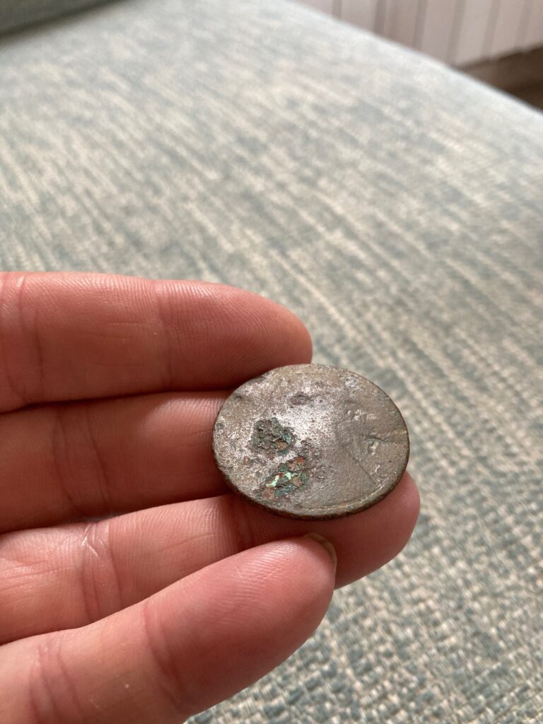 What turned up was the remains of a forged silver coin. Late eighteenth century. French in origin, from a period when bad money was common enough that imitation became an industry. At a glance, it would once have passed. That was the point. A thin skin of silver over a copper core, made deliberately, not accidentally. This wasn’t decay masquerading as fraud; it was fraud, designed to circulate.